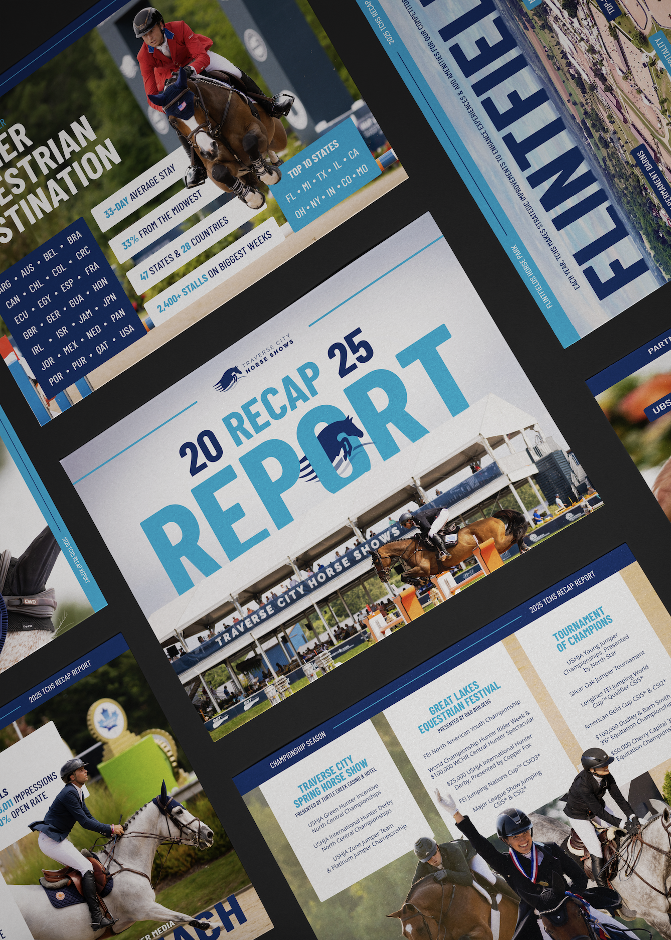 As the TCHS venue continues to grow, so does the importance of cultivating strong sponsorship partnerships. In collaboration with the sponsorship and marketing teams, I designed the 2025 TCHS Recap Report: an 18-page, fully customizable document that captures the excitement and scale of the show while weaving real imagery into key performance data. Within a week of delivering final assets, the sponsorship team shared positive feedback, noting the report’s flexibility and value as a tailored tool for engaging prospective partners.